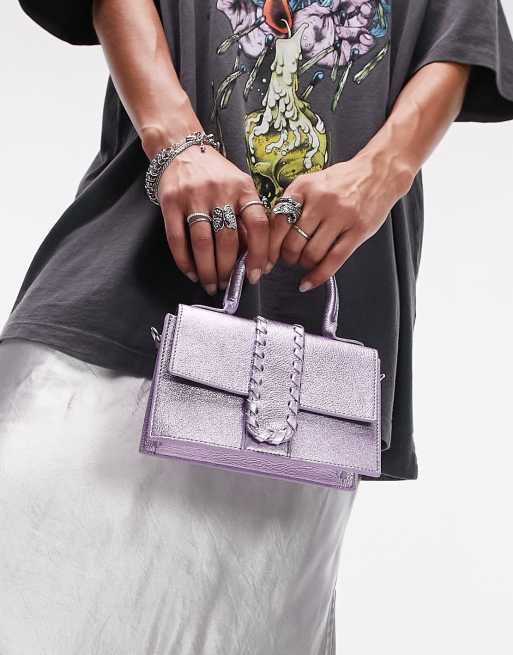 lola mini weave detailed leather crossbody bag in metallic ASOS