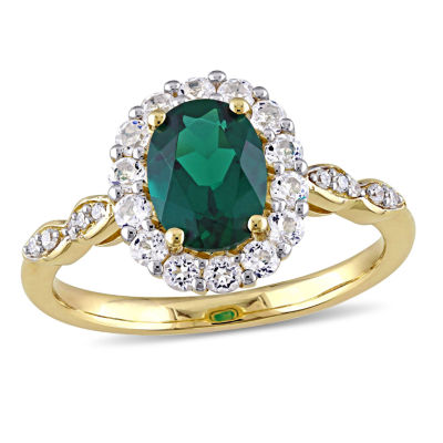 Womens Diamond Accent Lab Created Emerald 14K Gold Cocktail RingJCPenney