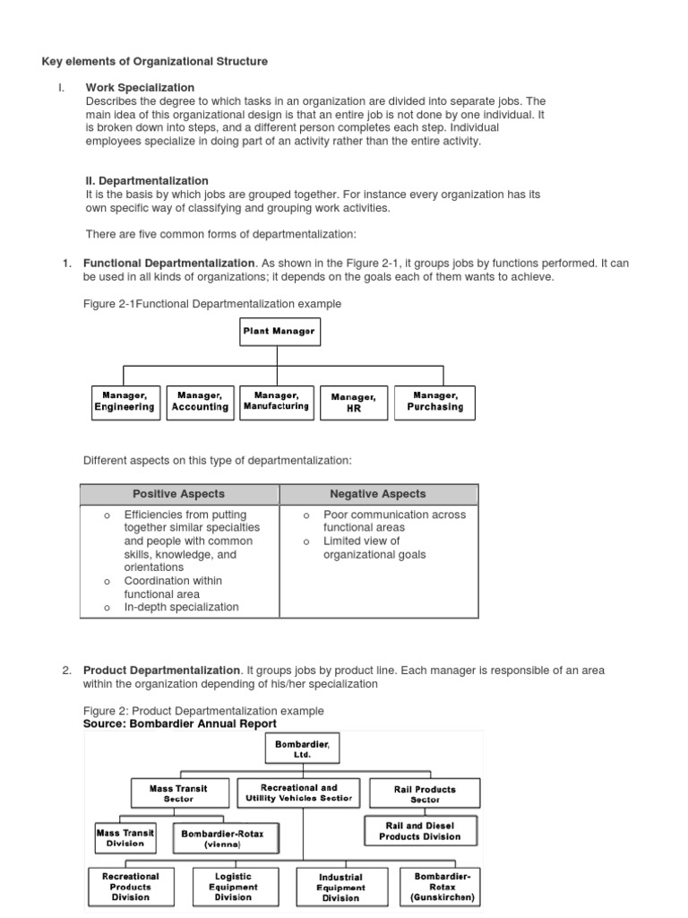Key elements of Organizational Structure Work Specialization