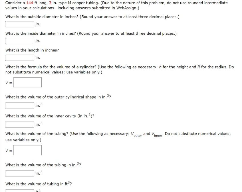 Solved Consider a 144ft long, 3 in. type M copper tubing.