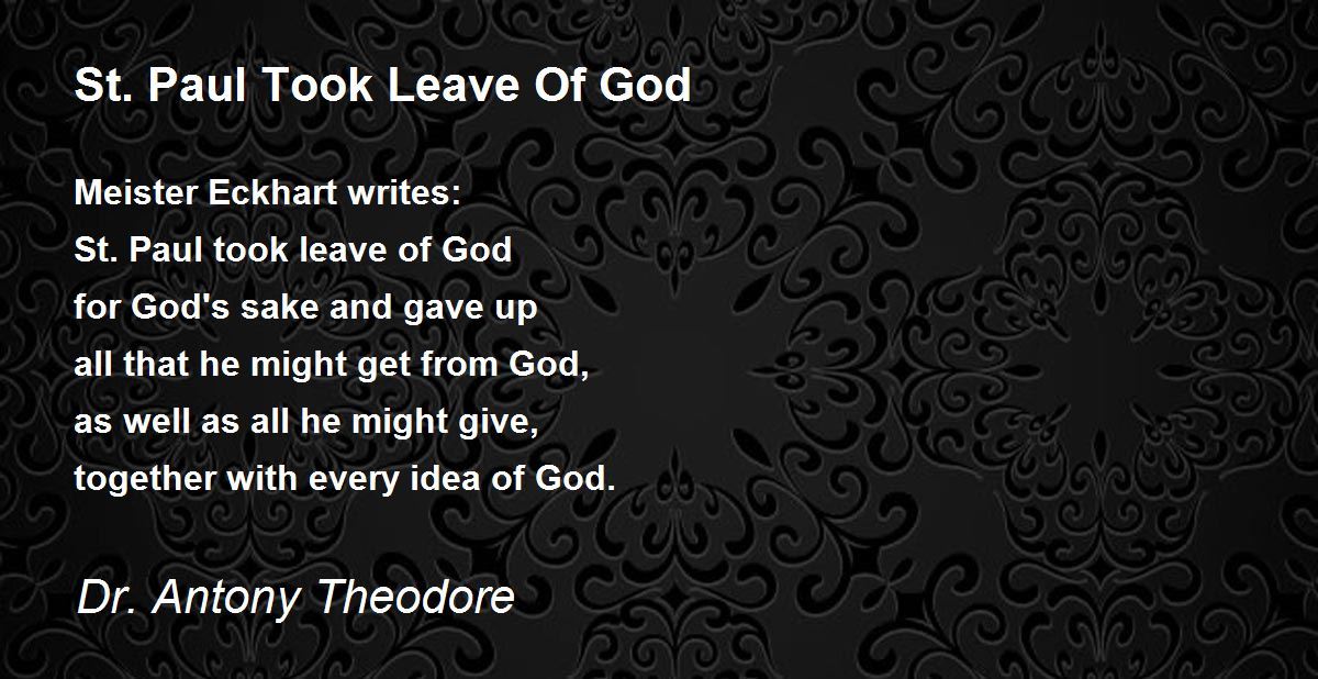 St. Paul Took Leave Of God St. Paul Took Leave Of God Poem by Dr