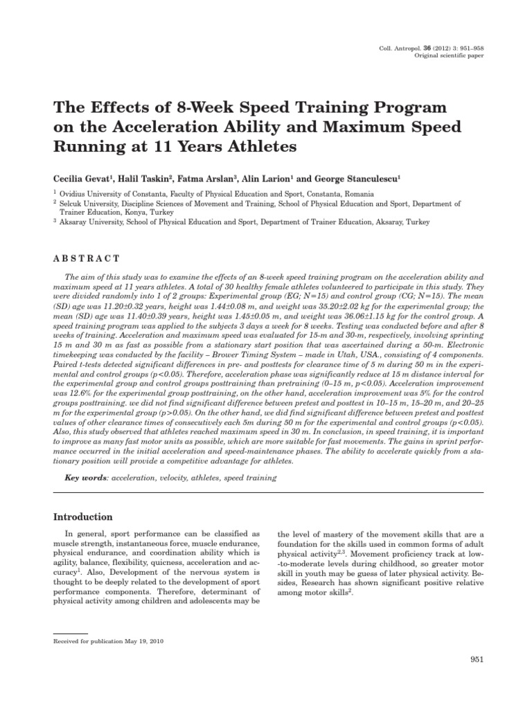 The Effects of 8Week Speed Training Program On The Acceleration Ability and Maximum Speed