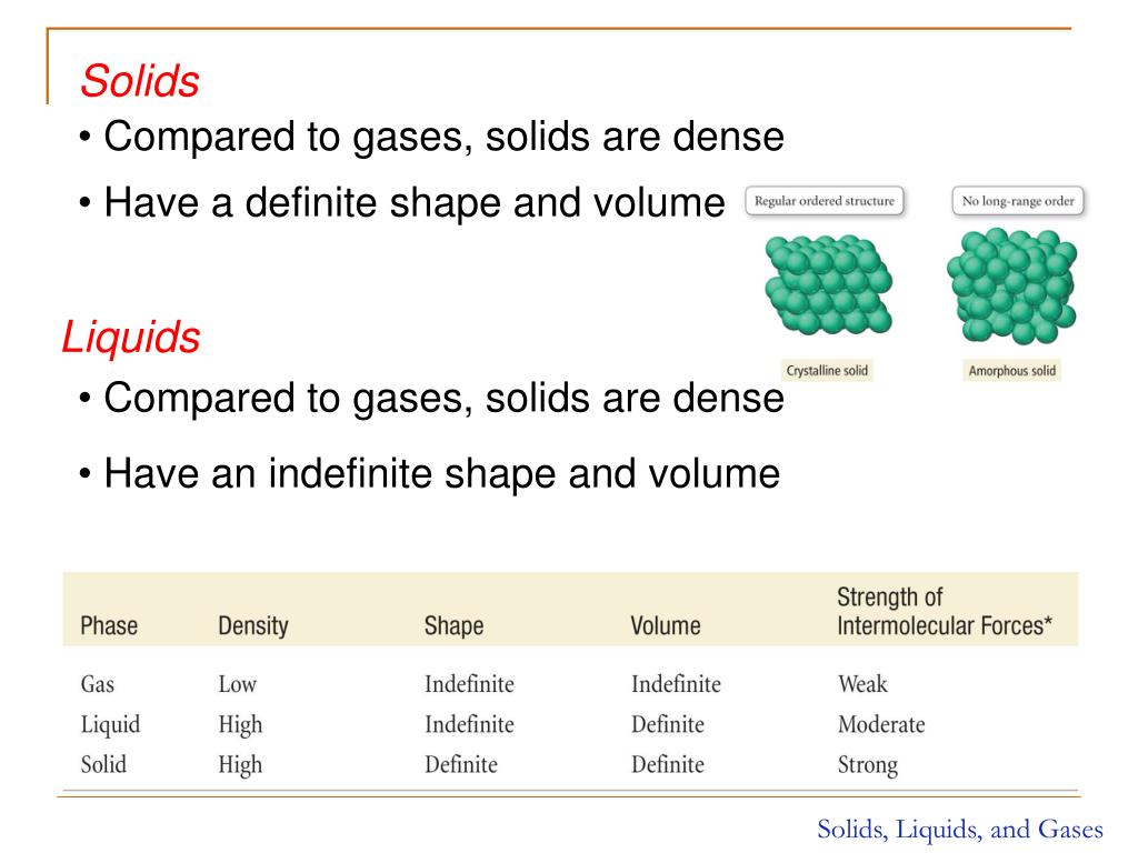 PPT Intermolecular Forces PowerPoint Presentation, free download ID Solids Liquids And Gases Intermolecular Forces Solids with highly ordered structures are said to be crystalline. Solids and liquids are condensed phases. All liquids experience surface tension, an imbalance of forces at the surface of the liquid. The equilibrium between a liquid and its vapor depends on the temperature of the system; Converting a gas into a liquid or. Physical properties of liquids and solids are. Solids Liquids And Gases Intermolecular Forces.