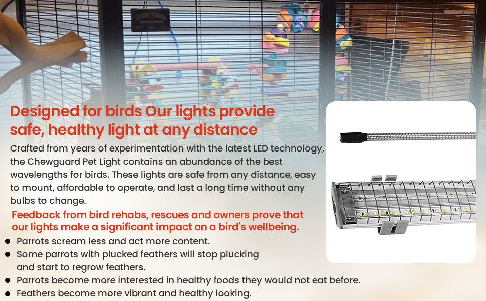 HappyBird Lighting Company Bird Cage Light with Chew Guard for Do Parrots Need Full Spectrum Light Inadequate light can lead to behavior problems such as feather picking, biting, and screaming. Most pet birds originate from the tropics, where days are long. There have been repeated reports of bird developing cataracts and blindness after prolonged exposure to full spectrum light. Instead i would opt for full spectrum florescent or daylight type florescent lights like shop lights, several. Do Parrots Need Full Spectrum Light.