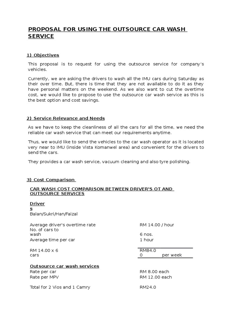 Car Wash Service Proposal Service Industries Wheeled Vehicles