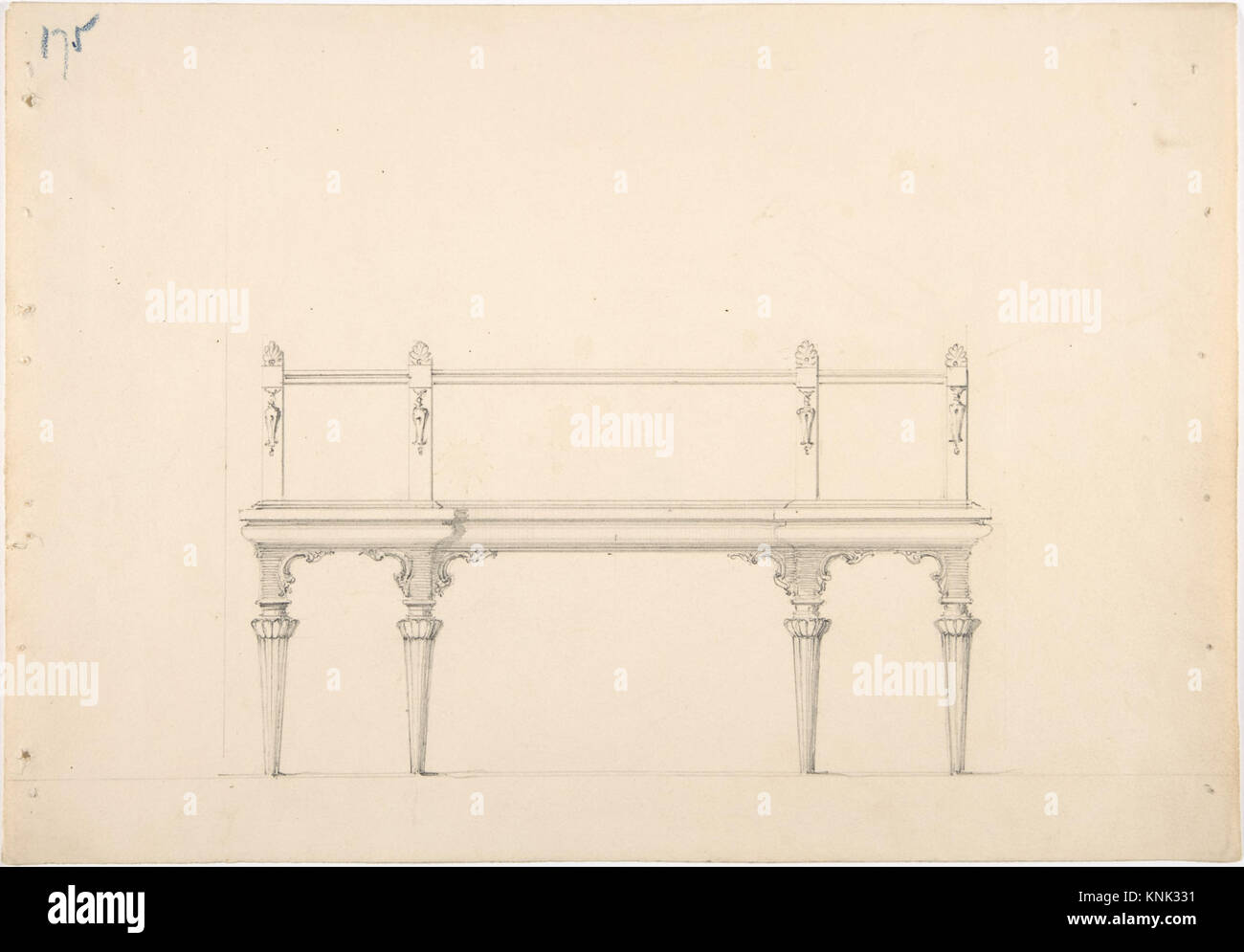 Design for a Mirrored Sideboard with Diminishing Columnar Legs and