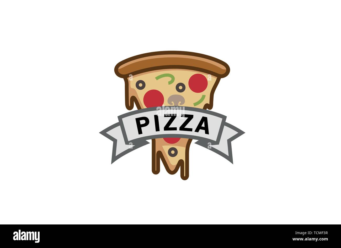 Delicious Pizza Slice Ribbon Symbol Logo Design Illustration Stock