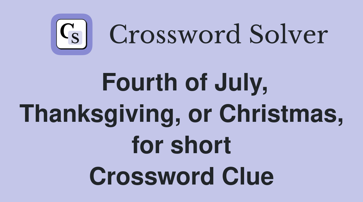Fourth of July, Thanksgiving, or Christmas, for short Crossword Clue