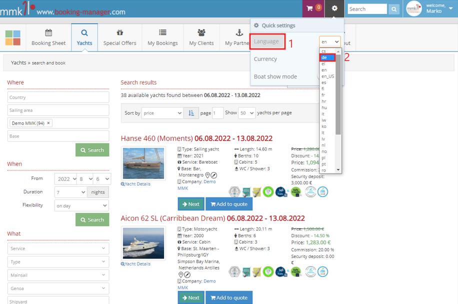 How to Search the boats in different Languages Booking Manager