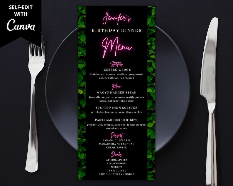 Editable Birthday Dinner Menu Card Printable Birthday Dinner Etsy