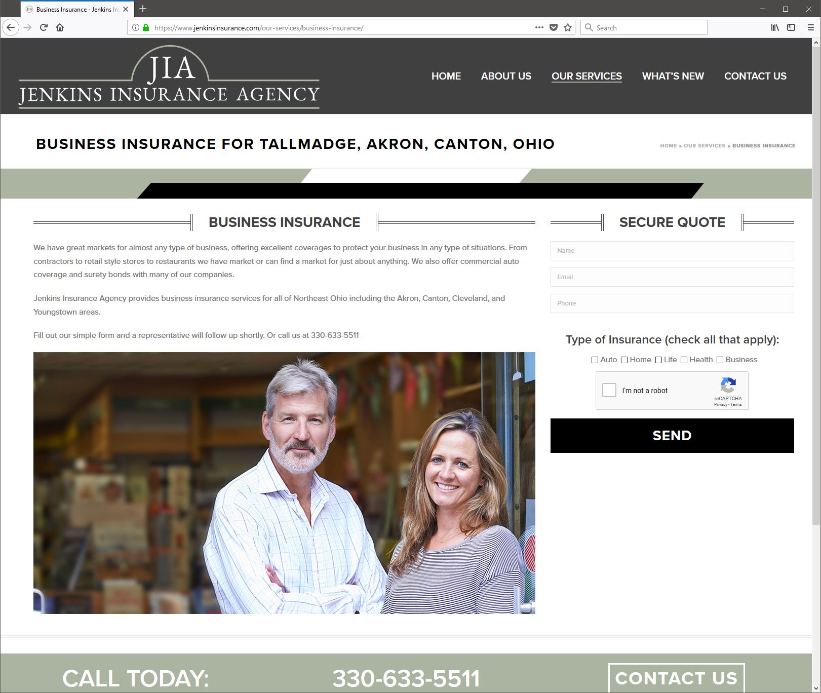 Responsive site Design for Jenkins Insurance Agency, Akron, Ohio