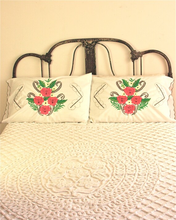 pair of vintage mexican embroidered pillow cases