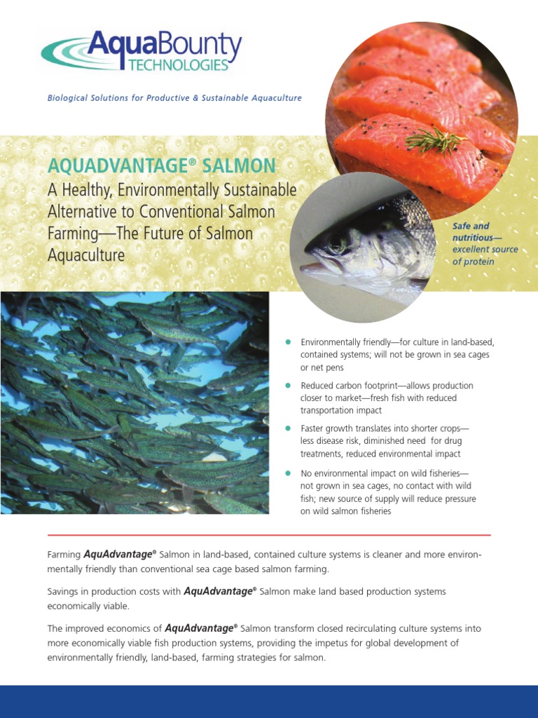 AquAdvantage biotech salmon moves step closer to FDA approval The Aquadvantage Salmon Potential Benefits • aquadvantage salmon grows to market size using 25% less. The aquadvantage salmon grows twice as fast as its wild counterpart, and is already being sold commercially. Aquadvantage salmon is a genetically engineered (ge) fish, a ge atlantic salmon developed by aquabounty technologies in 1989. • salmon is already one of the world’s most efficient protein producers. Aquadvantage salmon has. Aquadvantage Salmon Potential Benefits.