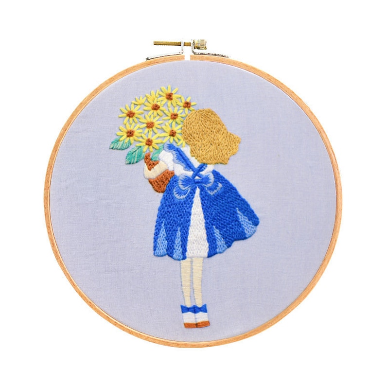 Diy Embroidery Kit Girl Flower Pattern Little Girl Embroidery Etsy