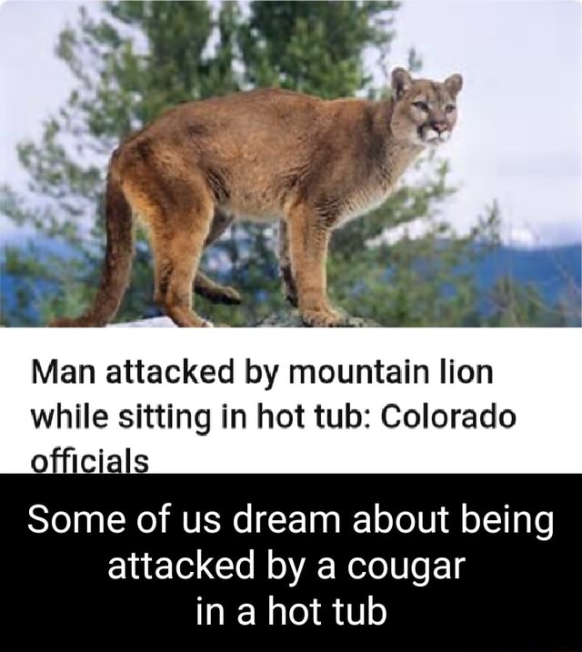 Search under way for mountain lion who clawed man in hot tub US News Hot Tub Colorado Mountain Lion Wildlife officials said monday they are searching for a mountain lion that clawed a man’s head while he was sitting in a hot tub. Colorado parks and wildlife are searching for a mountain lion after the animal clawed a colorado man sitting in a hot tub with. A man was attacked from behind by a mountain lion and suffered wounds. Hot Tub Colorado Mountain Lion.
