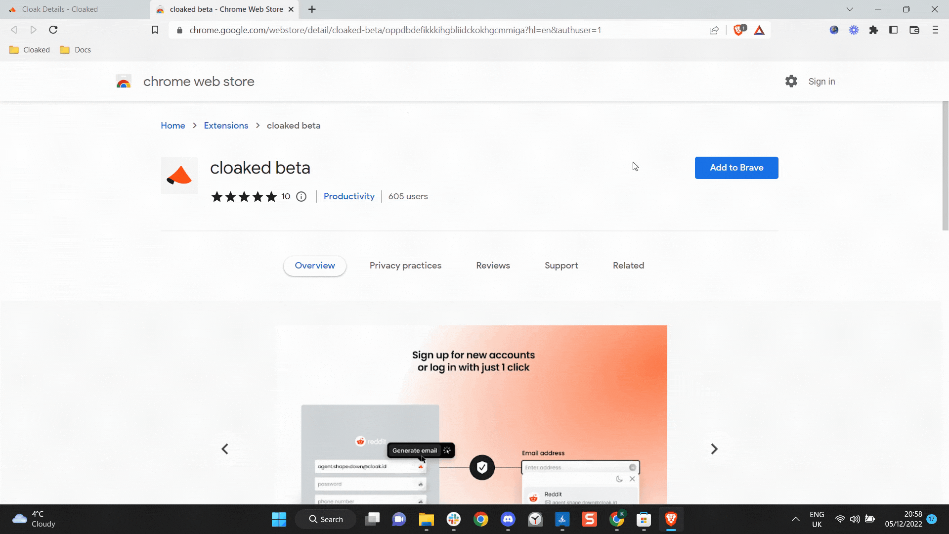 How to Install the Cloaked Extension in Brave Cloaked Support