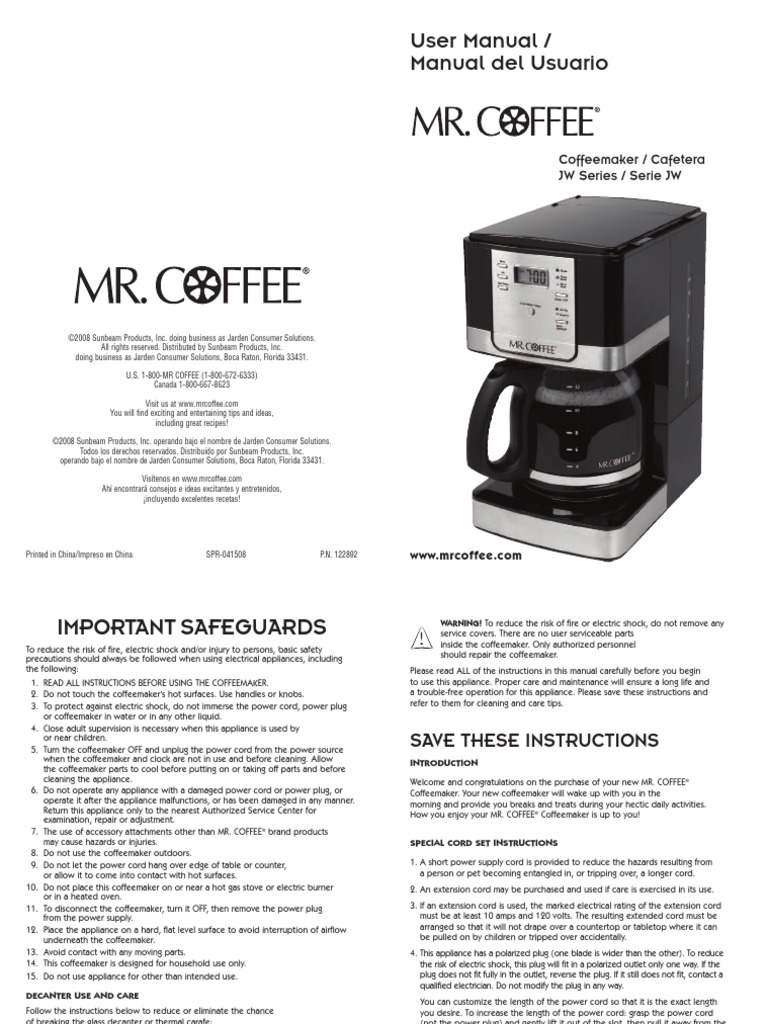 Mr. Coffee Manual PDF Filtration Coffee