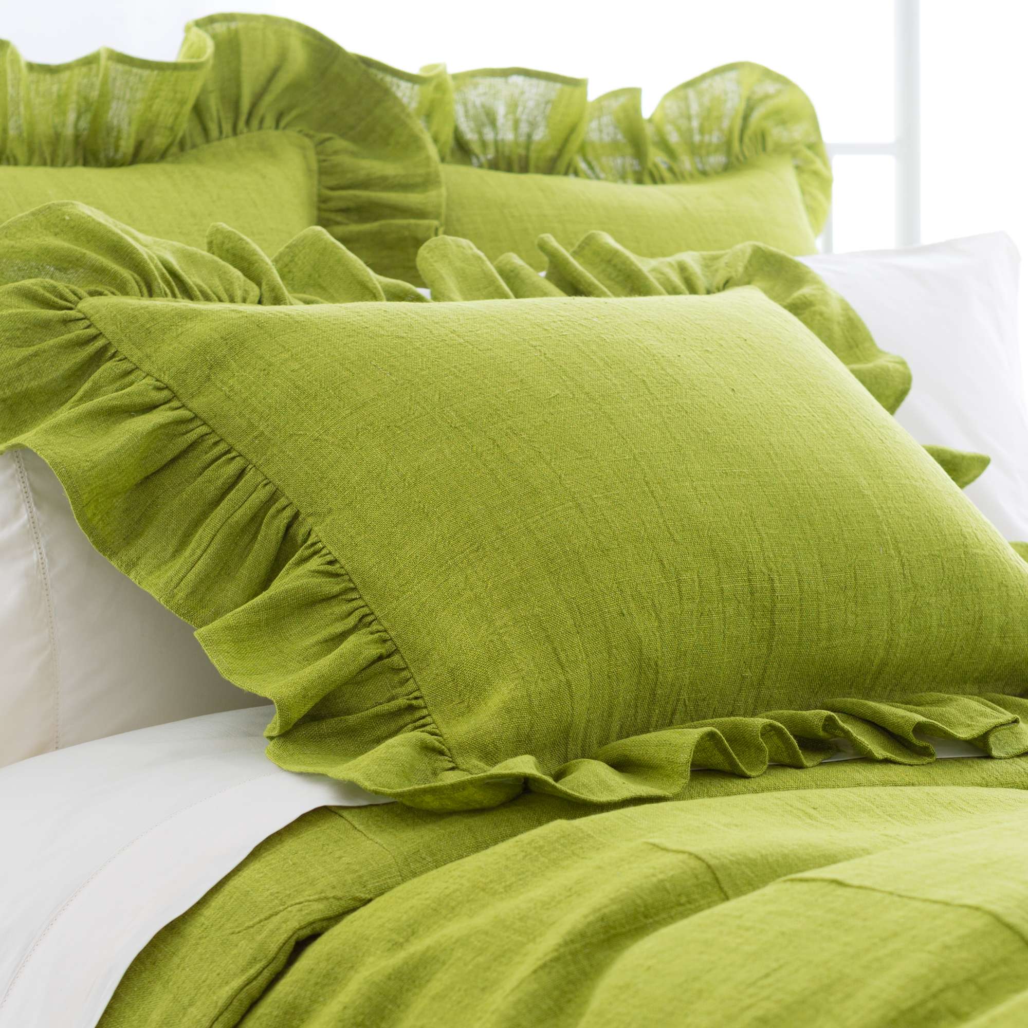 Stone Washed Linen Green Ruffled Sham The Outlet