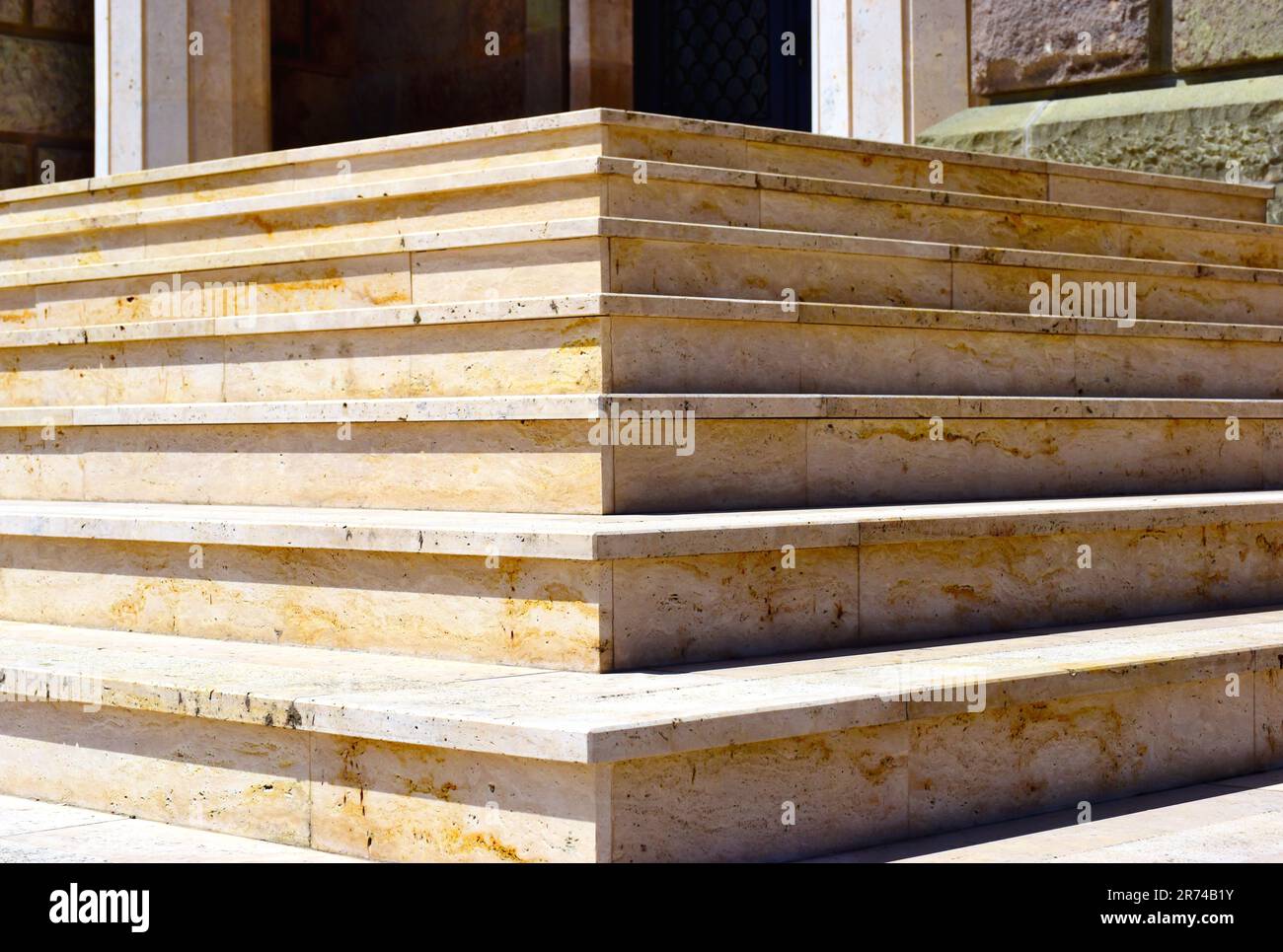 beige exterior stone stairs. abstract closeup view of stair corner