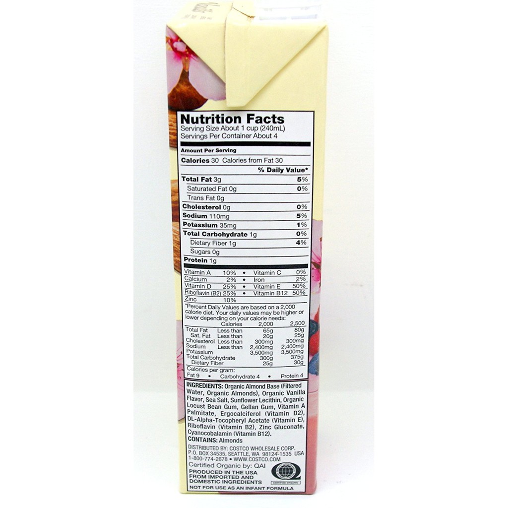 Kirkland Organic Unsweetened Almond Milk Nutrition Facts Blog Dandk