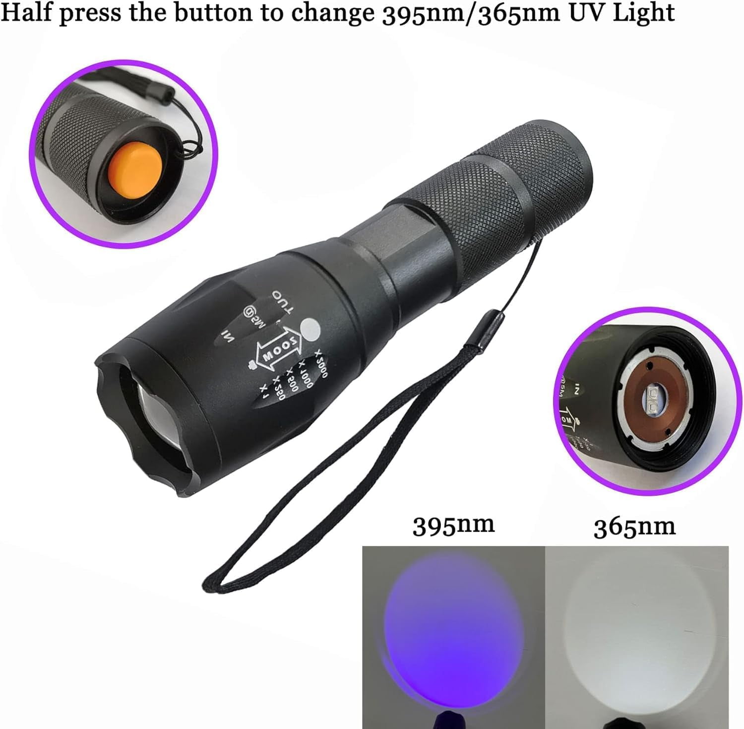 TRAHOOUV Flashlight 365nm & 395nm Wood's Lamp Black Light Ultraviolet