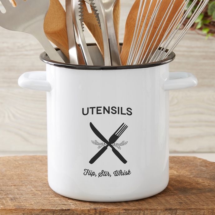 Farmhouse Stainless Steel Utensil Holder in White Bed Bath and Beyond