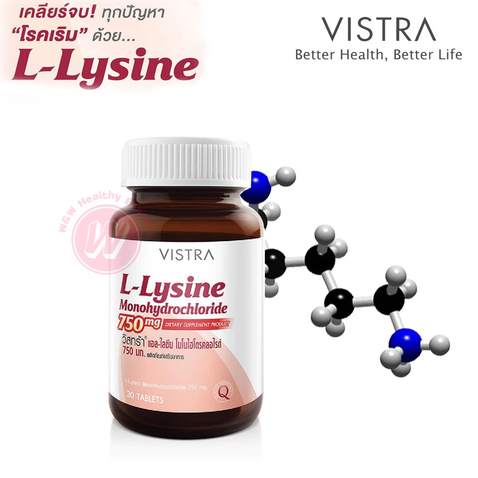 Vistra l lysine monohydrochloride 750 mg 30 เม็ด ไลซีน วิสทร้า แอลไลซีน