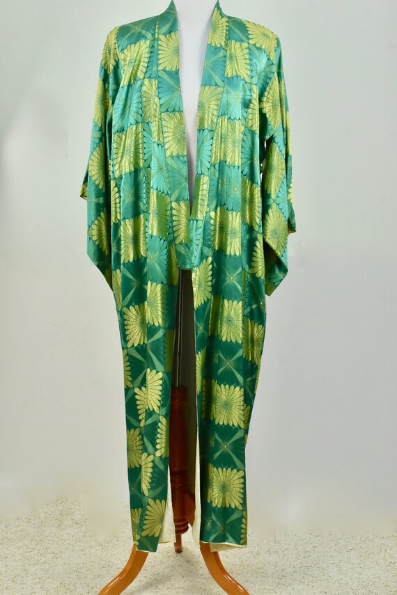 1960/70s SILK Teal Blue & Metallic Gold Kimono... M… Gem