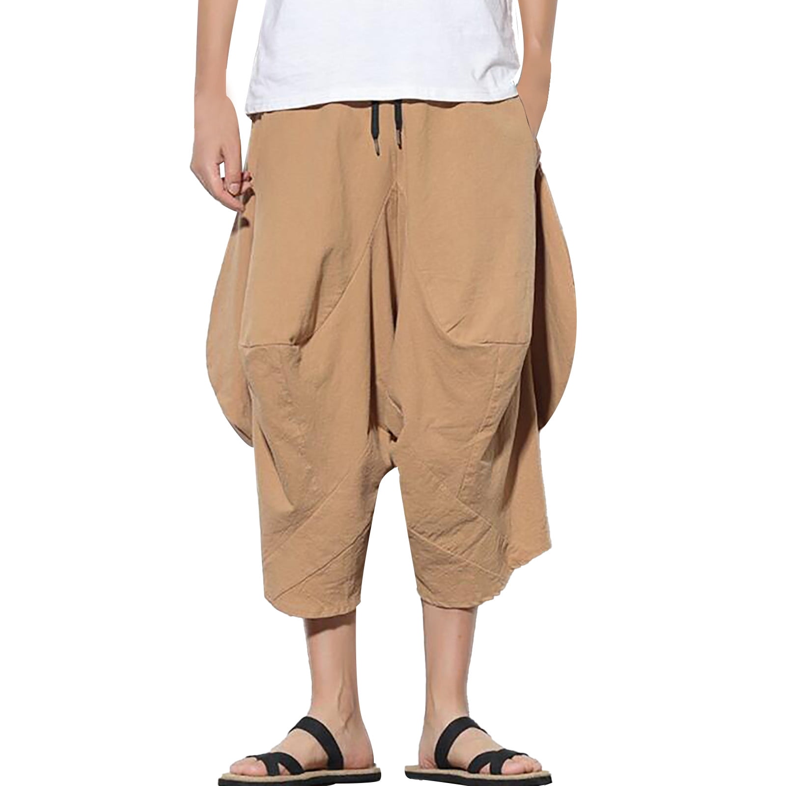 2DXuixsh Men's Sweatpants Men Cotton Linen Capri Pants Baggy Harem