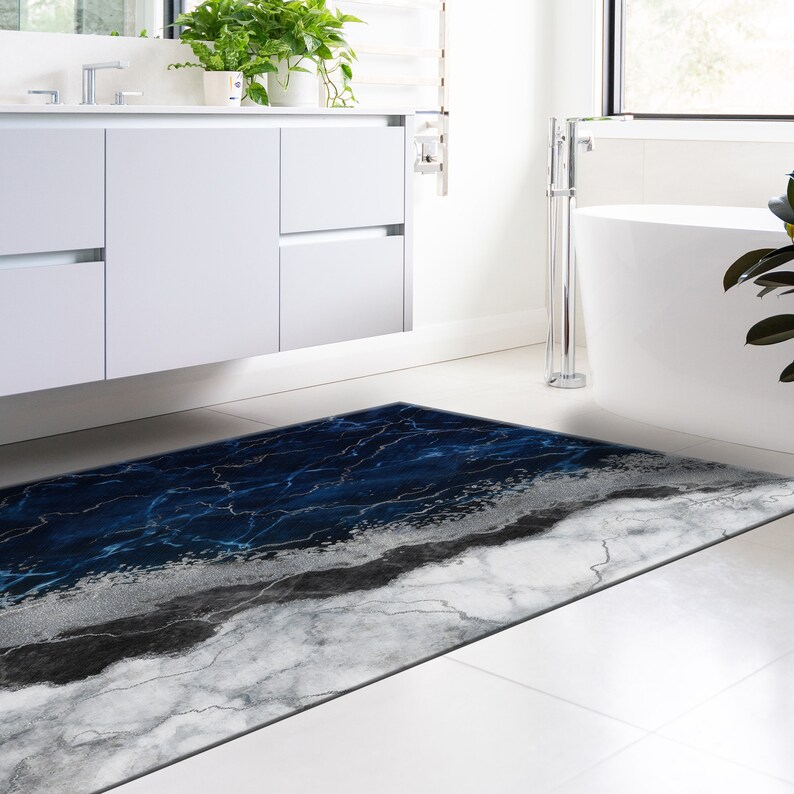 Blue Rug, Silver Marble Rug, Luxury Decor, Blue and Silver Rug, Navy Blue Rug, Marble Rug