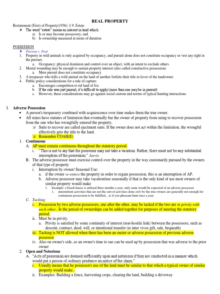Property Law Outline For Bar Exam (Multistate) PDF Fee Simple