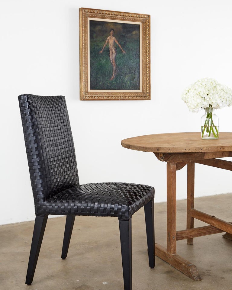 Set of Six Italian Woven Black Leather Dining Chairs at 1stDibs