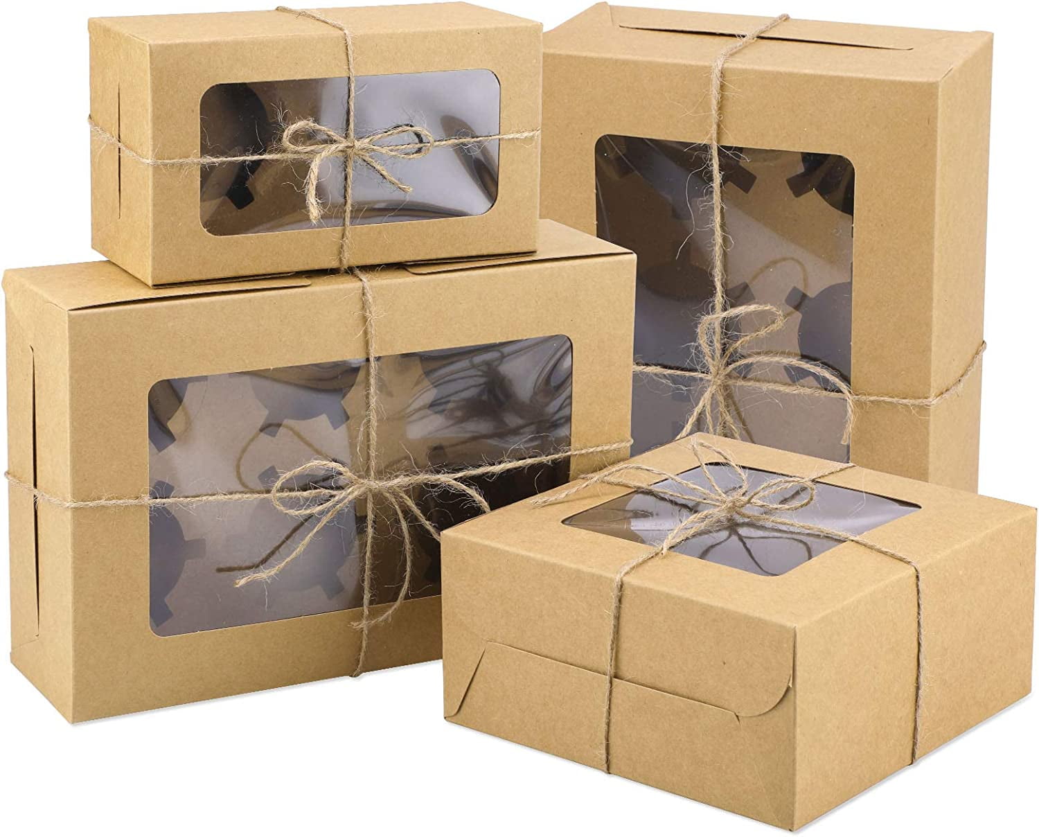 Cupcake Boxes,Kraft Individual Containers with Window Insert,Pastry