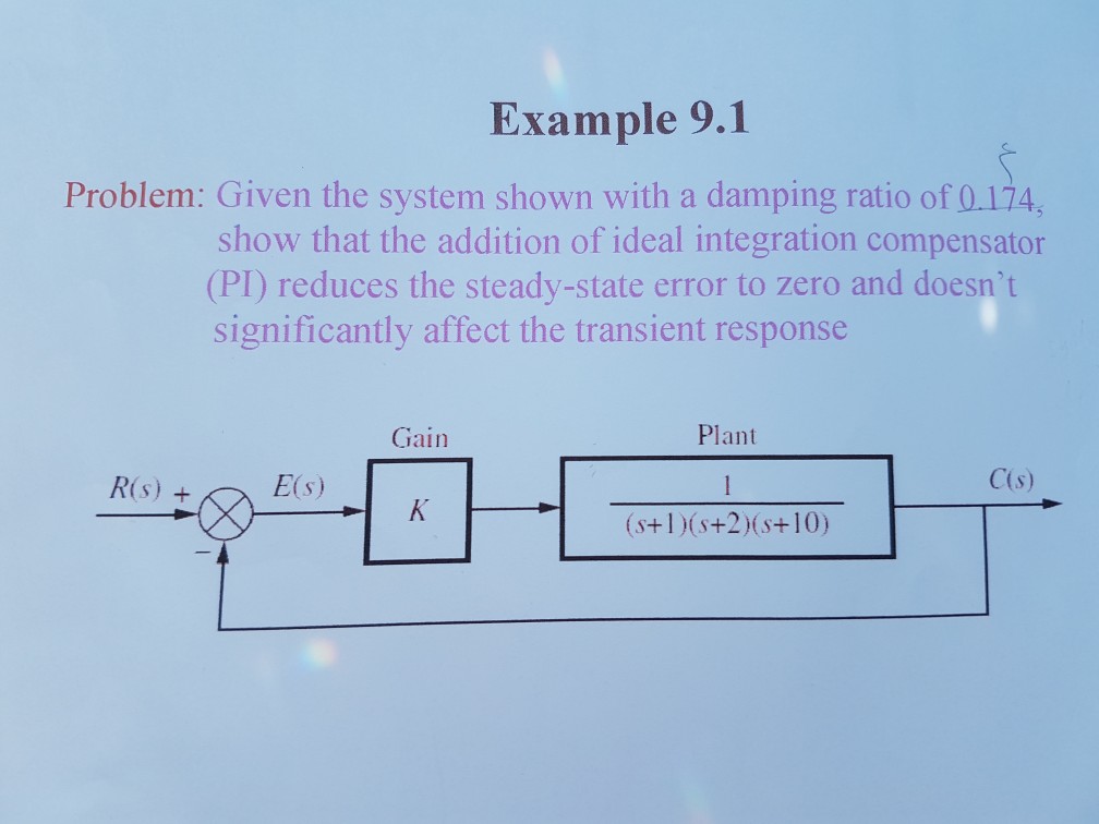Solved Example 9.1 Problem Given the system shown with a
