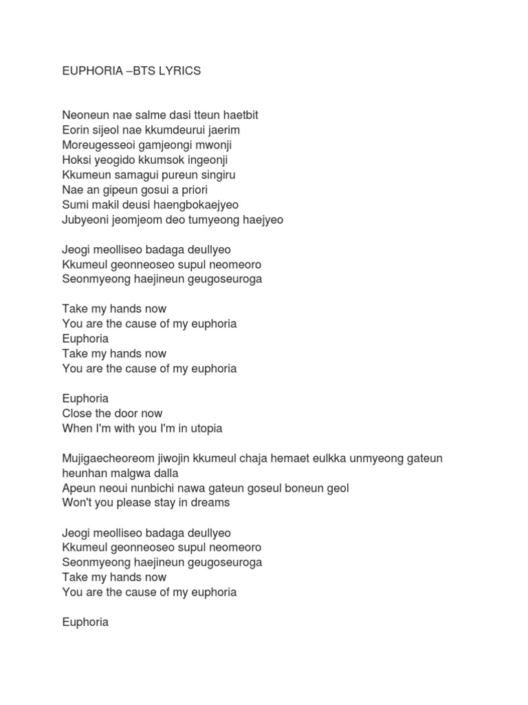Bts Euphoria Romanized Lyrics BTSRYMA
