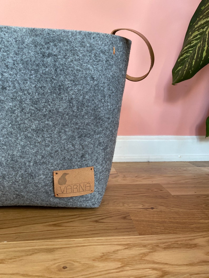 Felt storage basket with leather sides storage bag for living Etsy Felt Storage Basket Leather Handles Designed from felt material and finished in a modern grey colourway, this storage basket comes complete with a leather handle for ease of transporating around the room. Felt storage basket with leather handles, felt storage, custom size basket, felt storage box, household bins Check out our felt storage basket with leather handles selection for the very best in unique or. Felt Storage Basket Leather Handles.