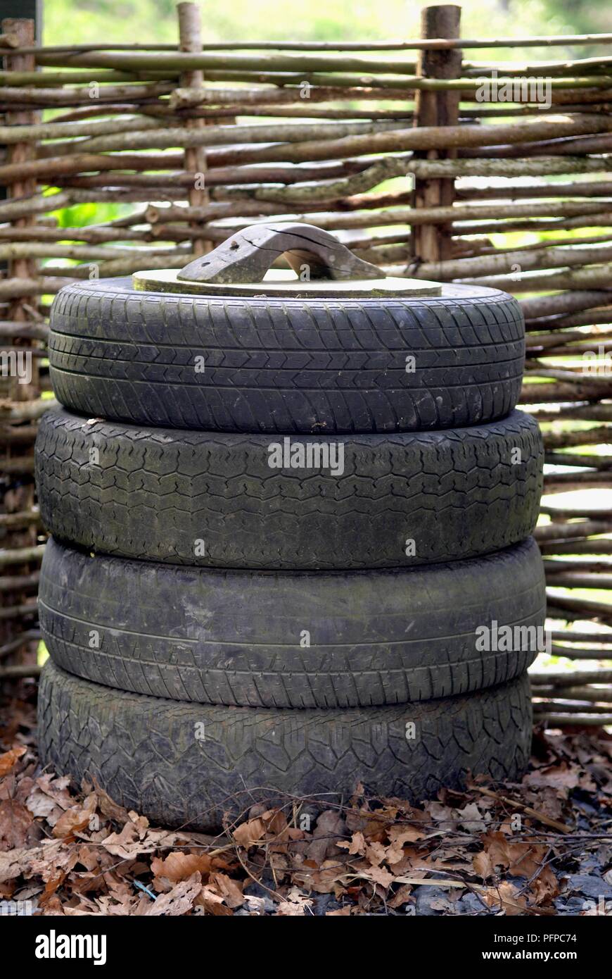 Compost bin made from stack of old rubber tyres Stock Photo Alamy