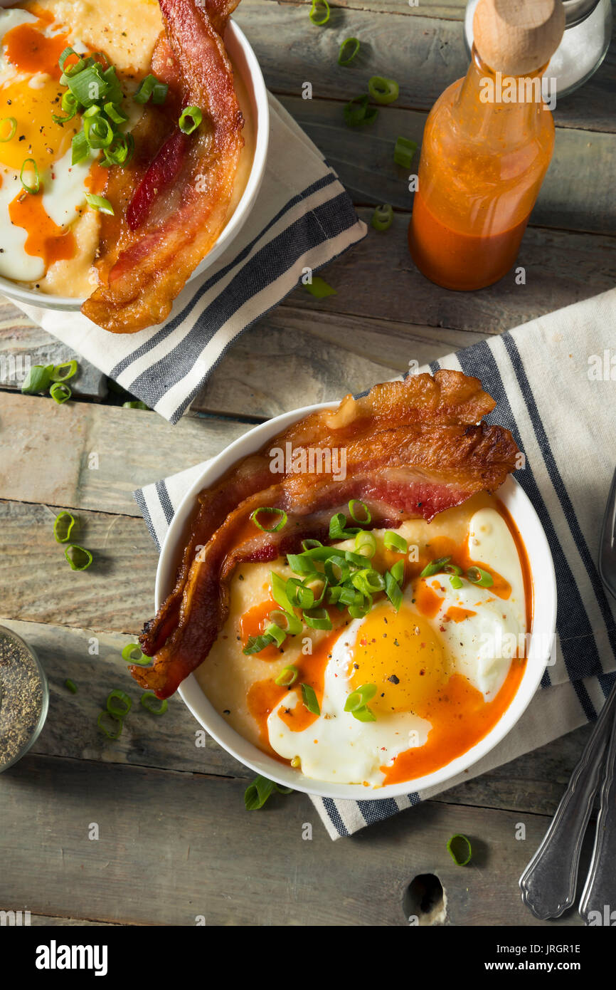 Homemade Cheesy Breakfast Grits with Eggs and Bacon Stock Photo Alamy
