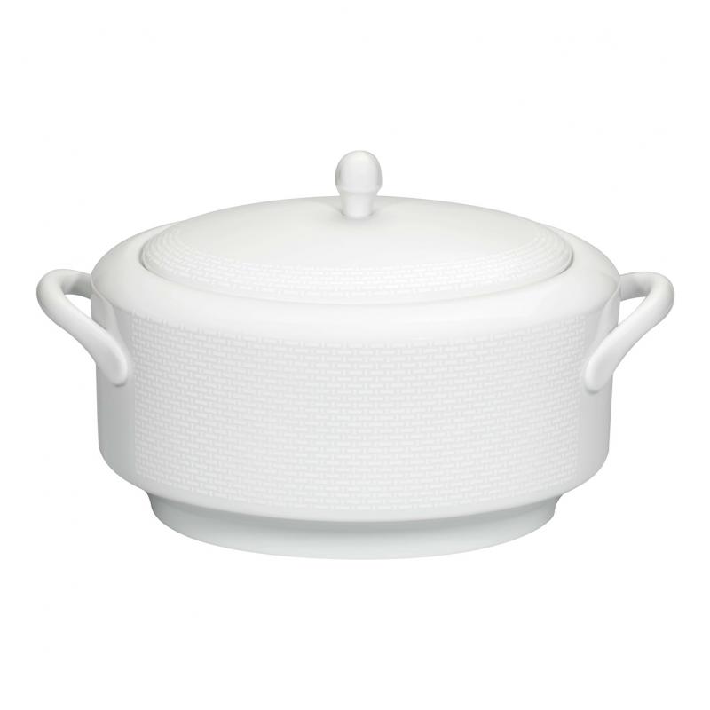 White classic soup tureen from the Cesta collection with a white relief