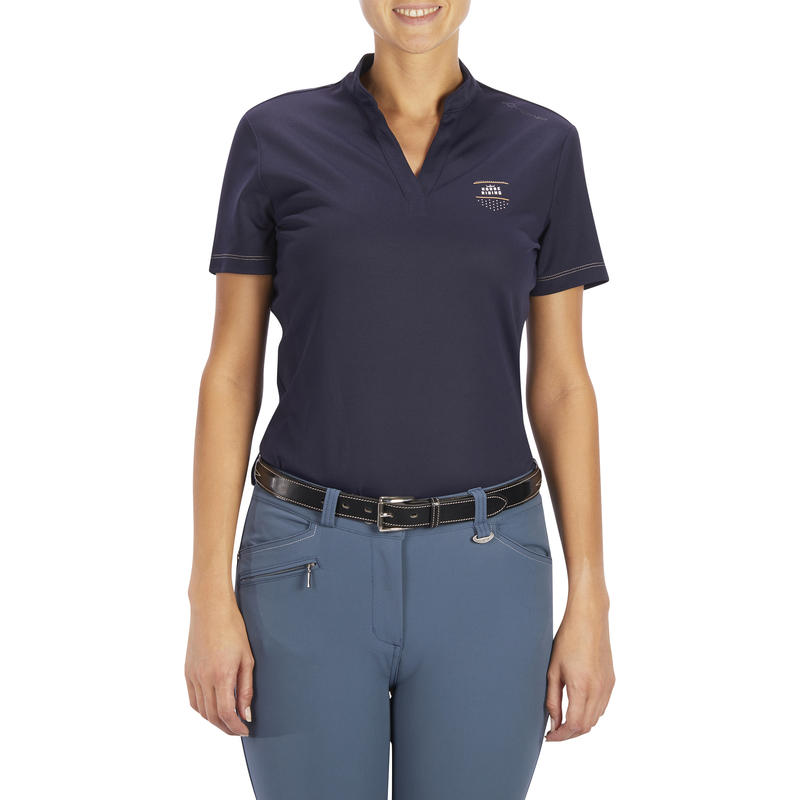 Women's Horse Riding ShortSleeved Polo Shirt 140 Blue Decathlon Horse Riding Polo Shirts Womens step up your style with rb equestrian's collection of women's polo tops! discover our wide range of equestrian clothing at harry hall. For a classic and timeless look, check out our range of horse riding polo shirts. personalised, horse riding, ladies polo shirt, boasting breast shield & back pearlescent print. Perfect for riders who love a blend. Horse Riding Polo Shirts Womens.