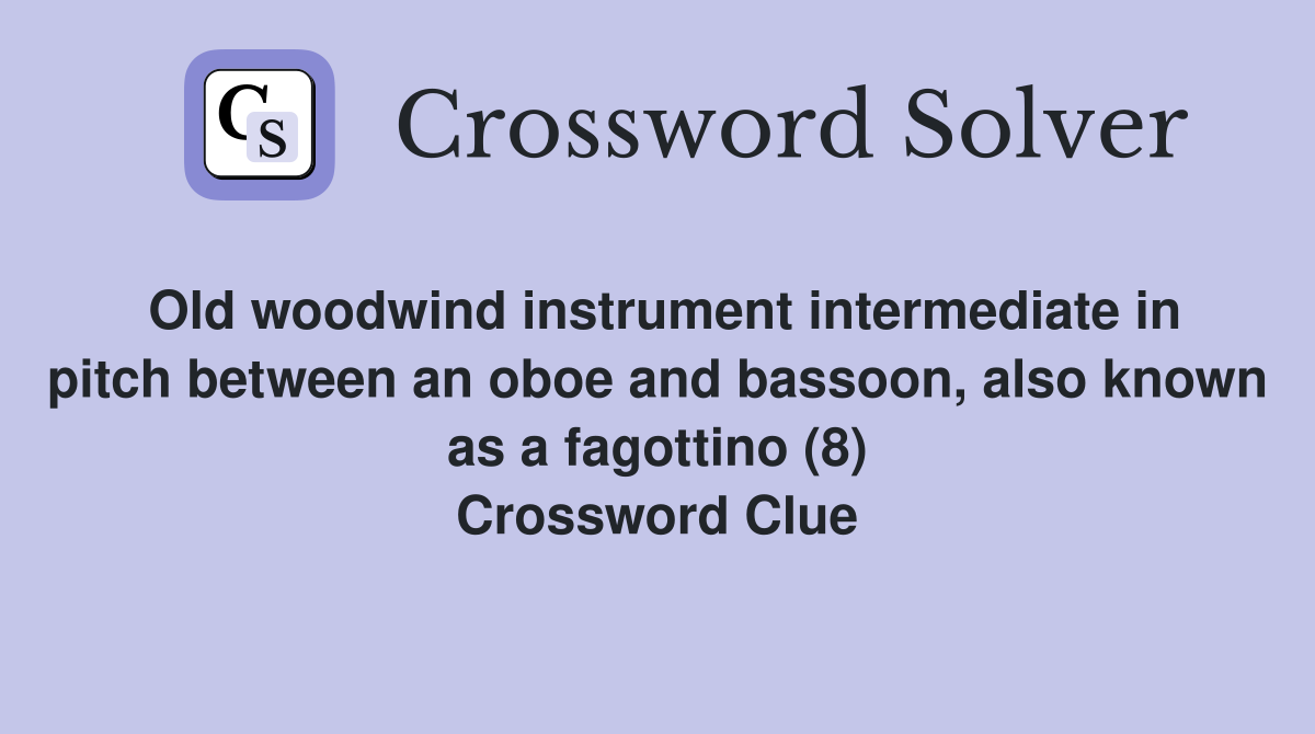 Old woodwind instrument intermediate in pitch between an oboe and Woodwind Instrument Crossword Clue 7 Letters the most popular crossword solutions for woodwind instrument are oboe (4 letters), bassoon (7 letters), recorder (8. We will try to find the right answer to this particular. We have found 40 possible answers for this clue in our database. If you miss an answer fell free to contact us. all crossword answers with 4, 7 & 8. Woodwind Instrument Crossword Clue 7 Letters.