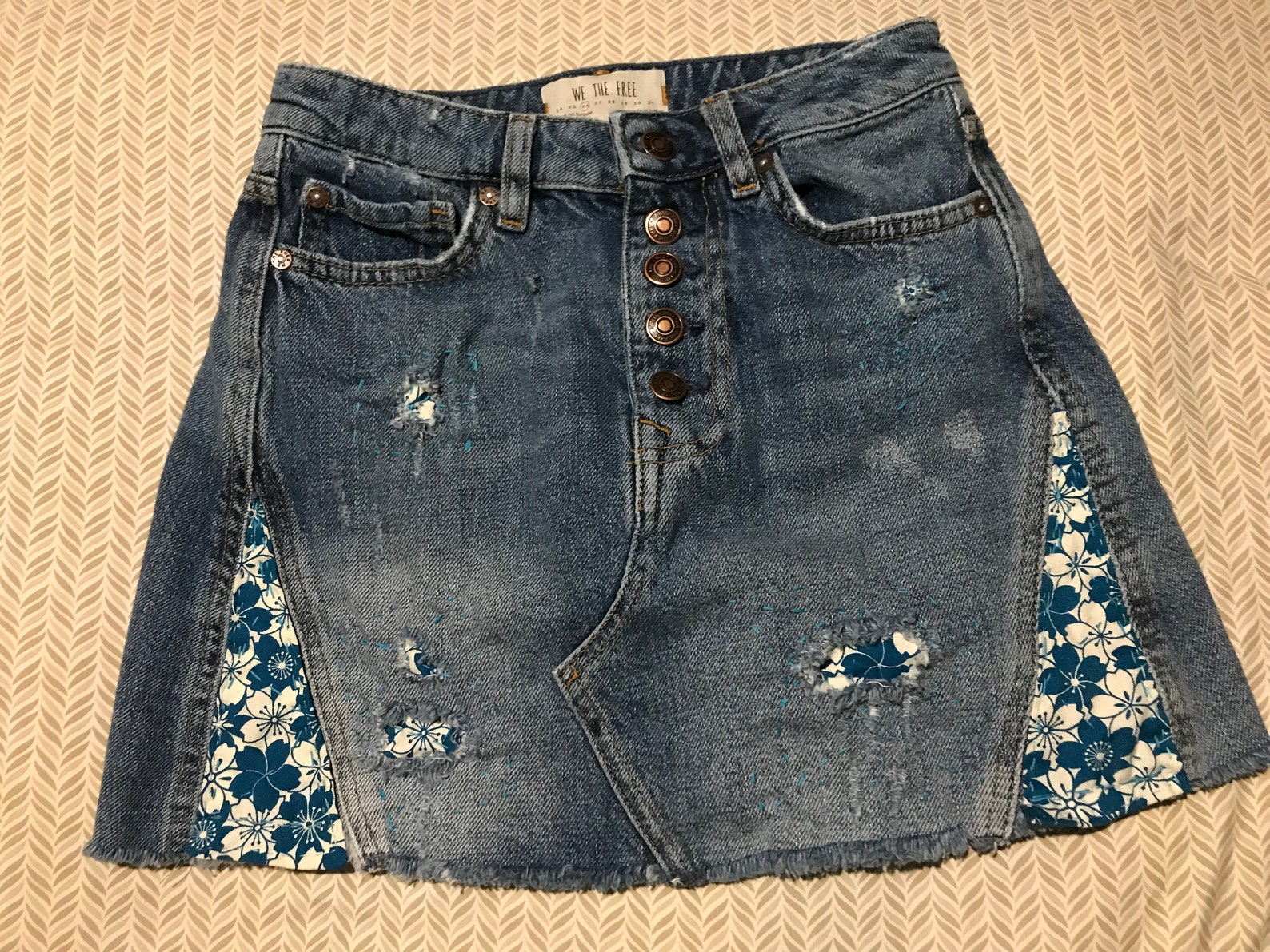 Sashiko Patched Upcycled We the Free distressed skirt 26 mano Etsy