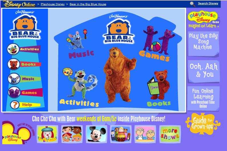Bear and Jamie in Playhouse Disney Live on Stage! Playhouse Disney Bear 1.2m views 11 years ago. This was before playhouse disney became a multi show experience. Nobody was more huggable on playhouse disney in the early 2000's than bear in the big blue house. Watch the full episode of bear in the big blue house, season 1 episode 1, home is where. Hang out with bear in his big blue house. Playhouse Disney Bear.