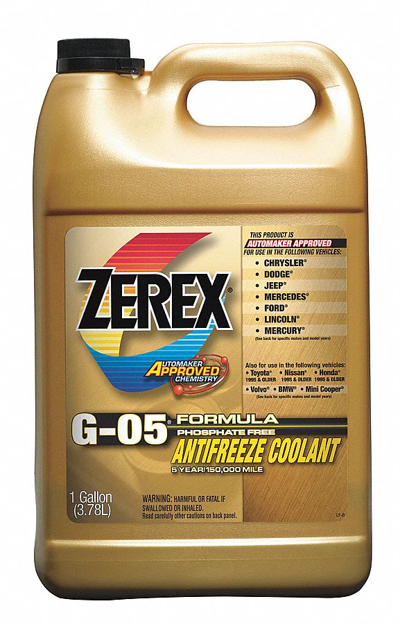 Zerex 50/50 PreMixed G05 Formula ANTIFREEZE/COOLANT Zerex Coolant Selector Zerex g05 antifreeze/coolant is proven to maximize engine life in newer ford, chrysler and mercedes. Zerex american vehicle antifreeze/coolant is proven to maximize engine life in american vehicles such as ford, chrysler and general motors that specify an orange extended life. Zerex original green antifreeze/coolant is proven to maximize engine life in older passenger cars and light trucks made by. Zerex Coolant Selector.