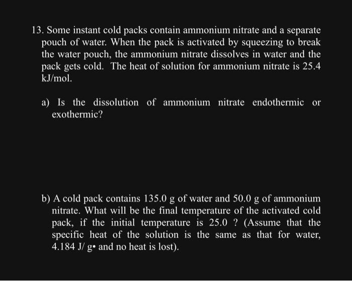 Solved 13. Some instant cold packs contain ammonium nitrate