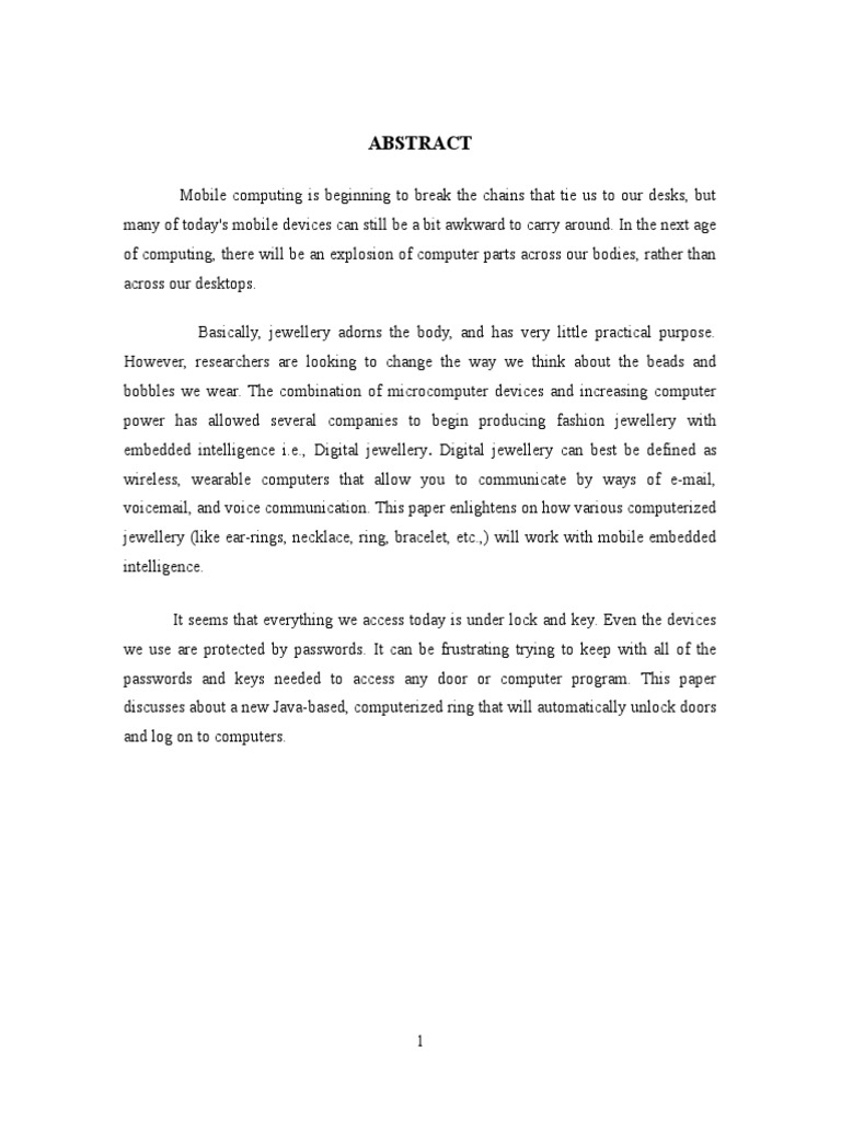 Seminar Report Format PDF Digital Jewellery Seminar Report Pdf Download final digital jewelry report | pdf. this document provides an overview of digital jewellery, which refers to fashion jewellery with embedded computer. this document is a seminar report on digital jewelry that was submitted to fulfill degree requirements. the combination of microcomputer devices and increasing computer power has allowed several companies to begin producing fashion jewelry.. Digital Jewellery Seminar Report Pdf Download.