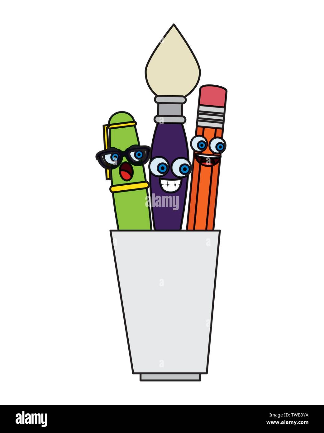 pencil holders with supplies kawaii characters Stock Vector Image & Art