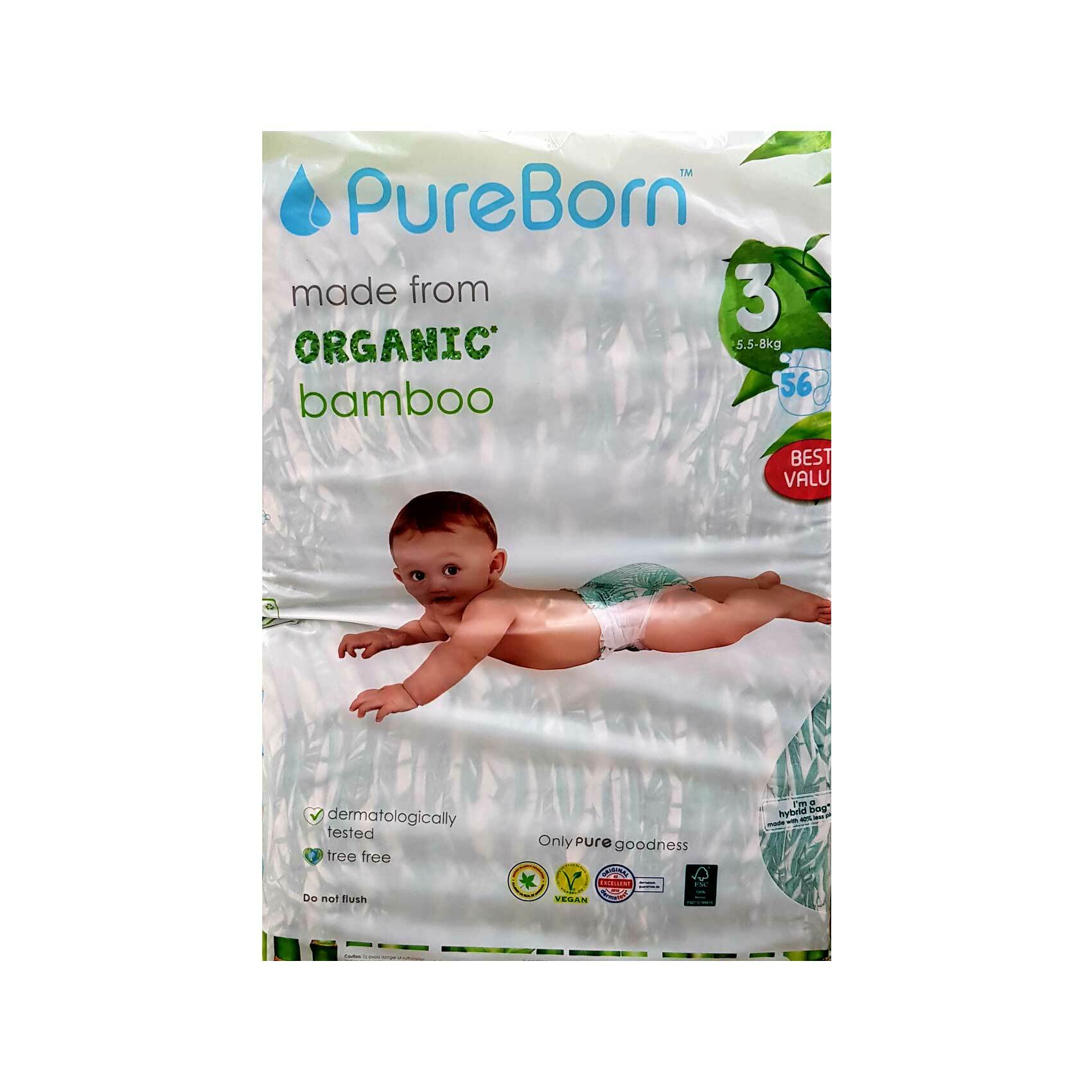 Buy Pure Born Organic Bamboo Baby Diapers No.3, 56's