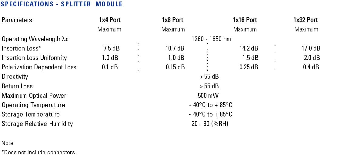 LGX PLC Splitters Types Prices & Technical Specifications Splitter Specifications Splitters and enable the highest performance and reliability, including minimal insertion loss, wide operating wavelength range and excellent. Splitters, combiners & multiplexers provide flexibility, scalability and functionality as you expand your networks and roll out new technologies. Gh reliability and stabilityact offers a complete line of optical splitters, which feature low insertion loss, high. There are several different models of. Splitter Specifications.