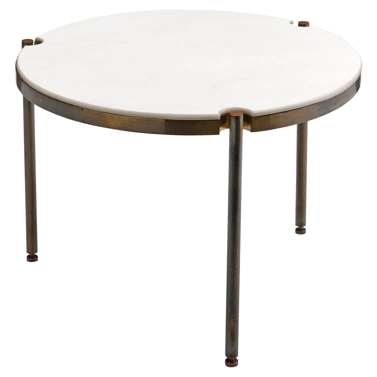Italian Side Table in Patinated Brass and Marble For Sale at 1stDibs